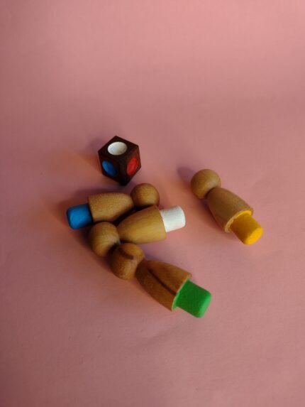Pião em madeira com ponta metálica, acompanhado de corda para enrolar e lançar. O movimento é feito manualmente, criando um giro estável ao tocar o chão. Brinquedo tradicional que estimula coordenação, controle e habilidade.