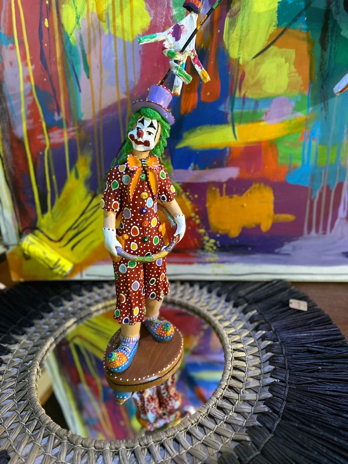 Dê um toque de alegria e originalidade ao seu ambiente com esta charmosa estátua de palhaço bambolê feita à mão. Com detalhes vibrantes e acabamento minucioso, a peça transmite leveza e diversão, tornando-se perfeita para decorar salas, estúdios, vitrines ou coleções temáticas.