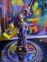 Dê um toque de alegria e originalidade ao seu ambiente com esta charmosa estátua de palhaço feita à mão. Com detalhes vibrantes e acabamento minucioso, a peça transmite leveza e diversão, tornando-se perfeita para decorar salas, estúdios, vitrines ou coleções temáticas.