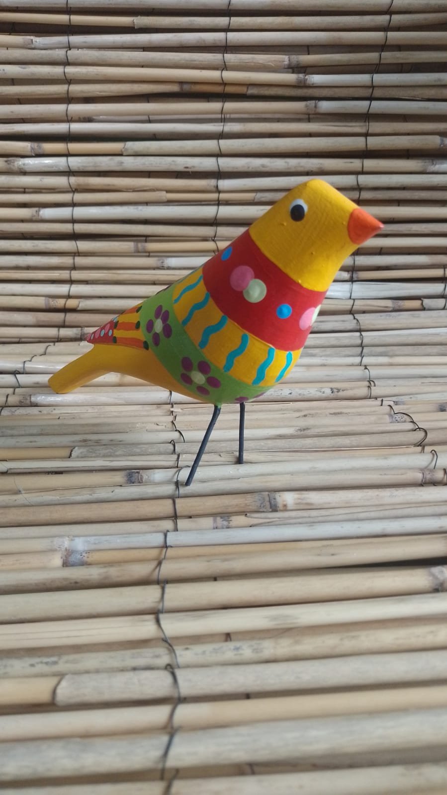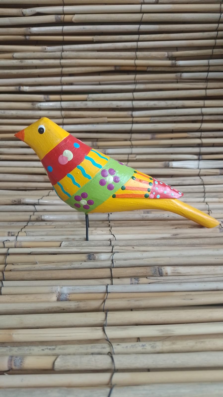 Encante sua decoração com este lindo pássaro artesanal em madeira, pintado à mão com cores vibrantes e padrões florais que transmitem alegria e leveza. Uma peça cheia de personalidade, perfeita para dar um toque artístico e acolhedor a qualquer ambiente.