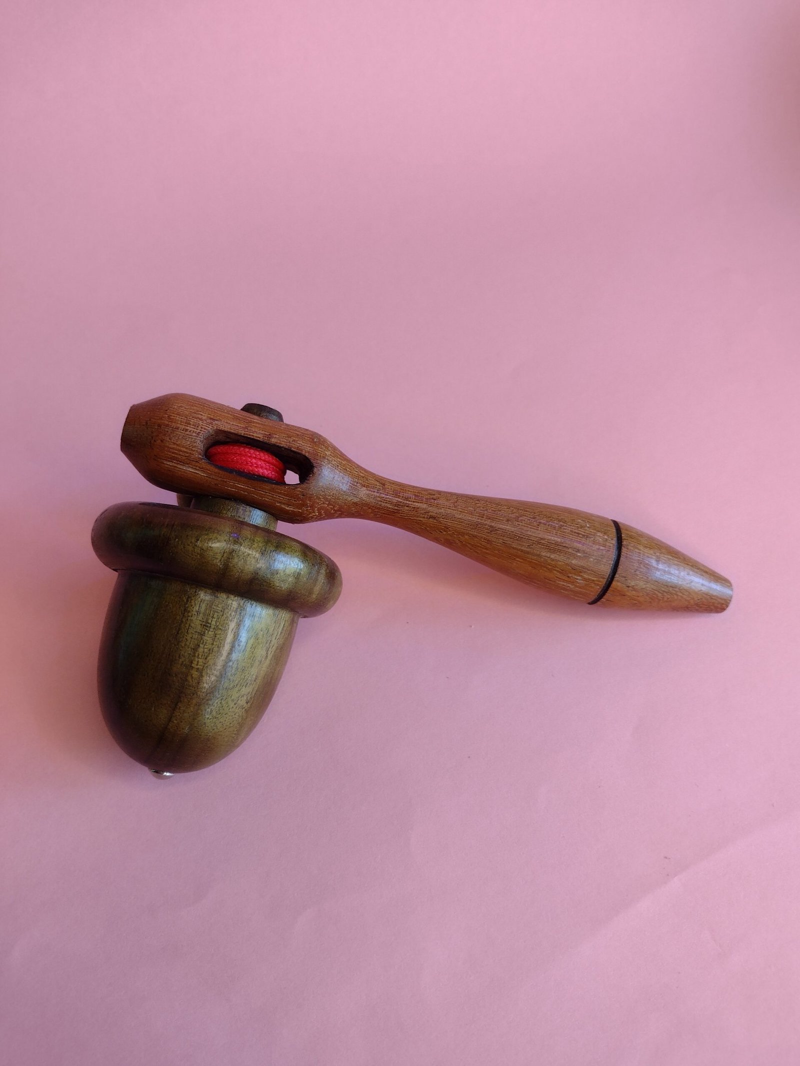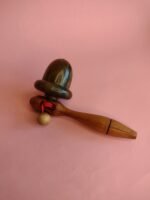 Pião em madeira com sistema de encaixe para bastão lançador. O giro é iniciado ao puxar o bastão, facilitando o uso sem necessidade de técnica. Ideal para brincadeiras rápidas, práticas e acessíveis para todas as idades.