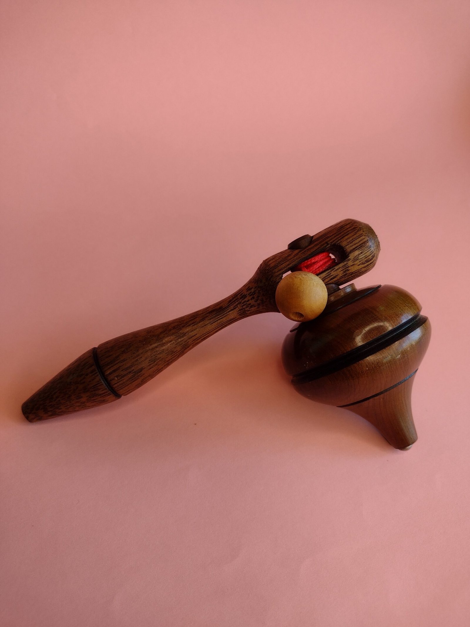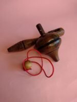 Pião em madeira com sistema de encaixe para bastão lançador. O giro é iniciado ao puxar o bastão, facilitando o uso sem necessidade de técnica. Ideal para brincadeiras rápidas, práticas e acessíveis para todas as idades.