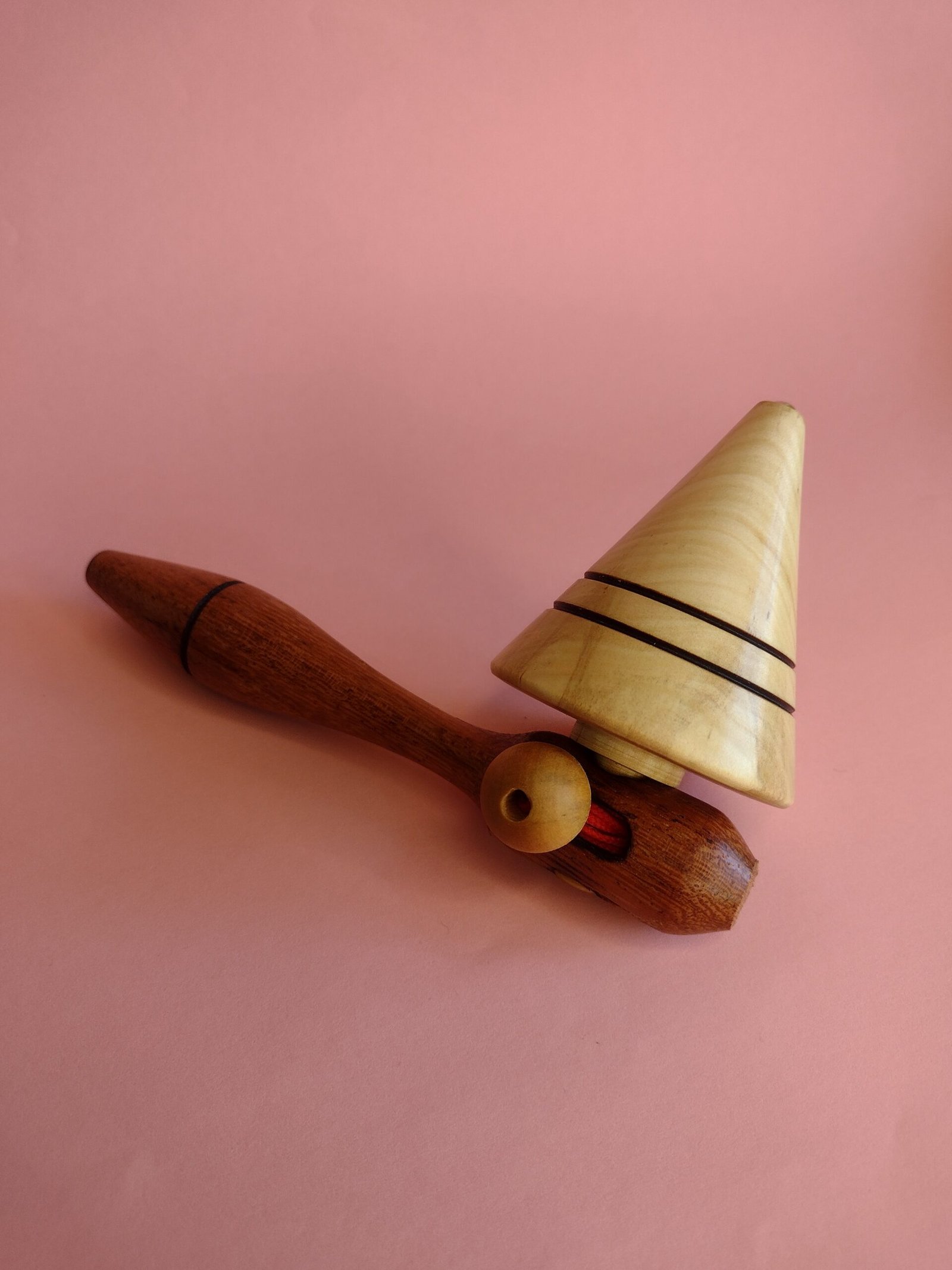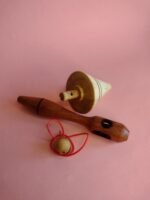 Pião em madeira com sistema de encaixe para bastão lançador. O giro é iniciado ao puxar o bastão, facilitando o uso sem necessidade de técnica. Ideal para brincadeiras rápidas, práticas e acessíveis para todas as idades.